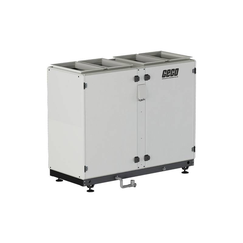 La GPV20-TOP est une centrale de traitement de l’air double flux conçue pour les installations où le raccordement des conduits d’air par le haut est privilégié. Avec un débit nominal de 1850 m³/h, elle s’adapte parfaitement aux bâtiments professionnels ou éducatifs nécessitant une ventilation centralisée et une intégration technique simplifiée en plafond ou en gaine technique verticale.