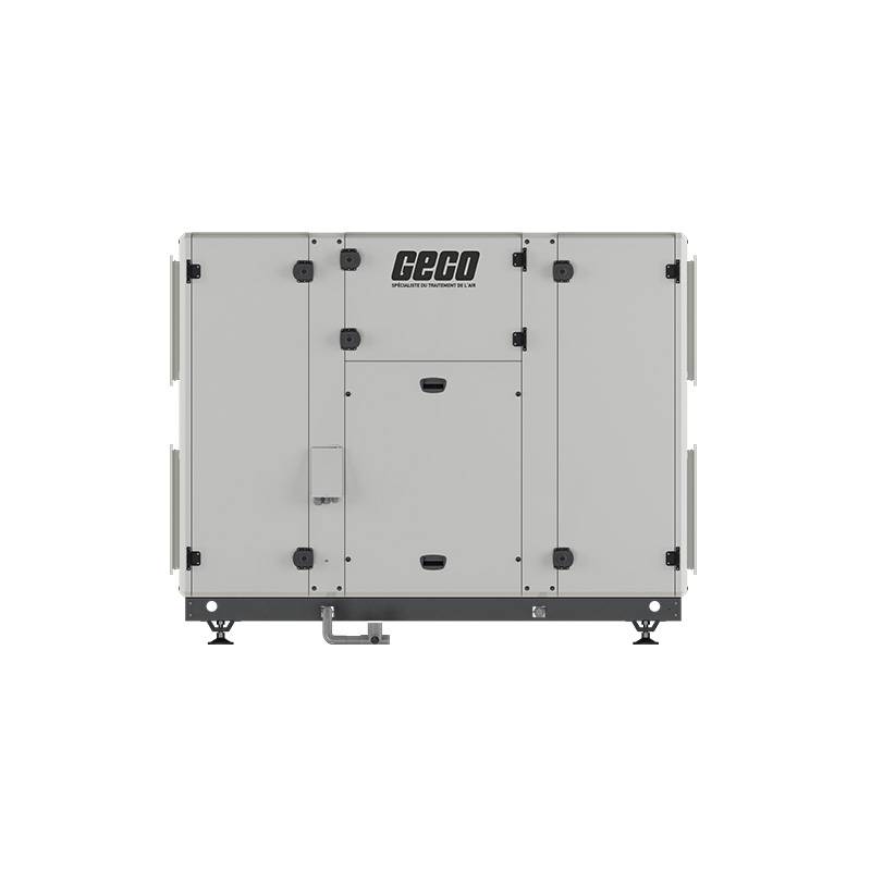 Son design vertical monobloc facilite l’intégration dans les installations. La structure est isolée thermiquement et acoustiquement grâce à des panneaux double paroi avec laine de roche. Les ventilateurs EC à haut rendement garantissent un fonctionnement silencieux, une consommation réduite et une régulation précise du débit d’air.